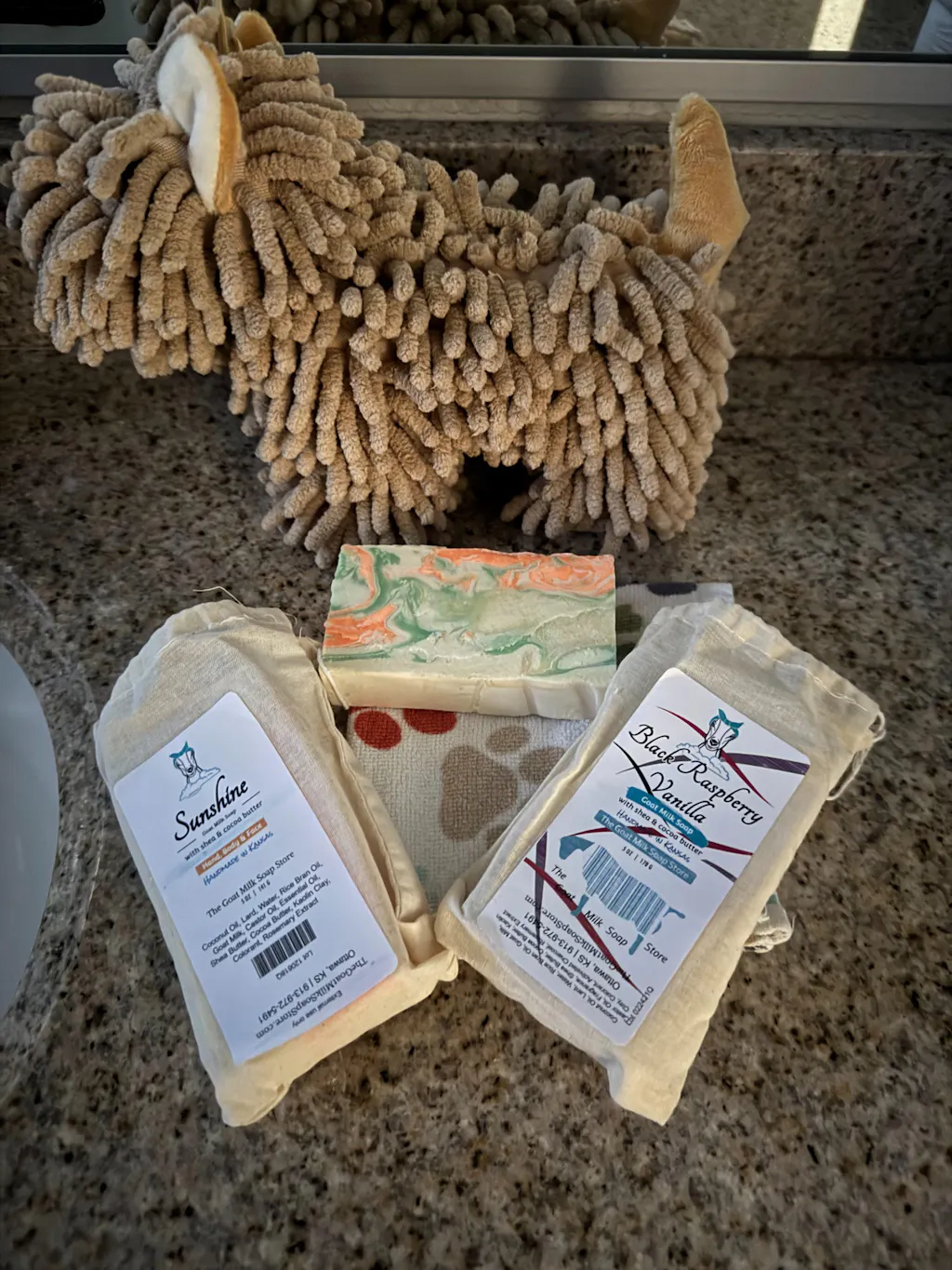 My favorites were out of stock :( so I decided to try something new. I love the Sunshine and the Vanilla Blackberry! The new little "soap sacks" are cute. I miss having the name of the goat that the milk came from right on the soap, but I trust that it was a happy goat. Thank you for being such an amazing company. I am glad my friend gifted me with your soap years ago. It is the only goat soap I will buy. Please tell the goats I said "Thank you"!